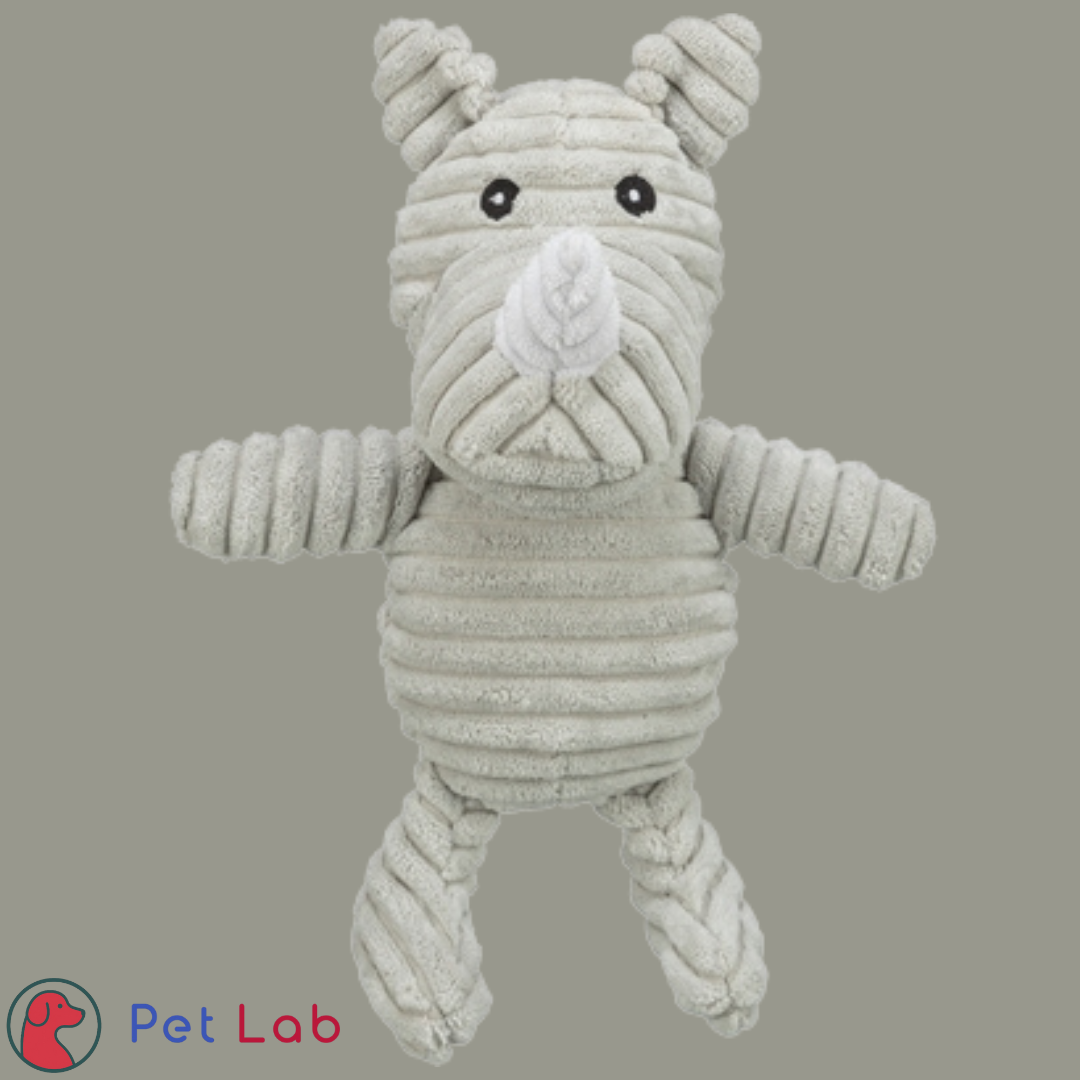 Deze zachte neushoorn van ribstofpluche is ideaal om mee te spelen én knuffelen. Het ribbelige oppervlak houdt je hond actief, terwijl het pluche materiaal comfortabel en veilig is. De neutrale grijze kleur maakt het een stijlvolle aanvulling op elke speelgoedmand.