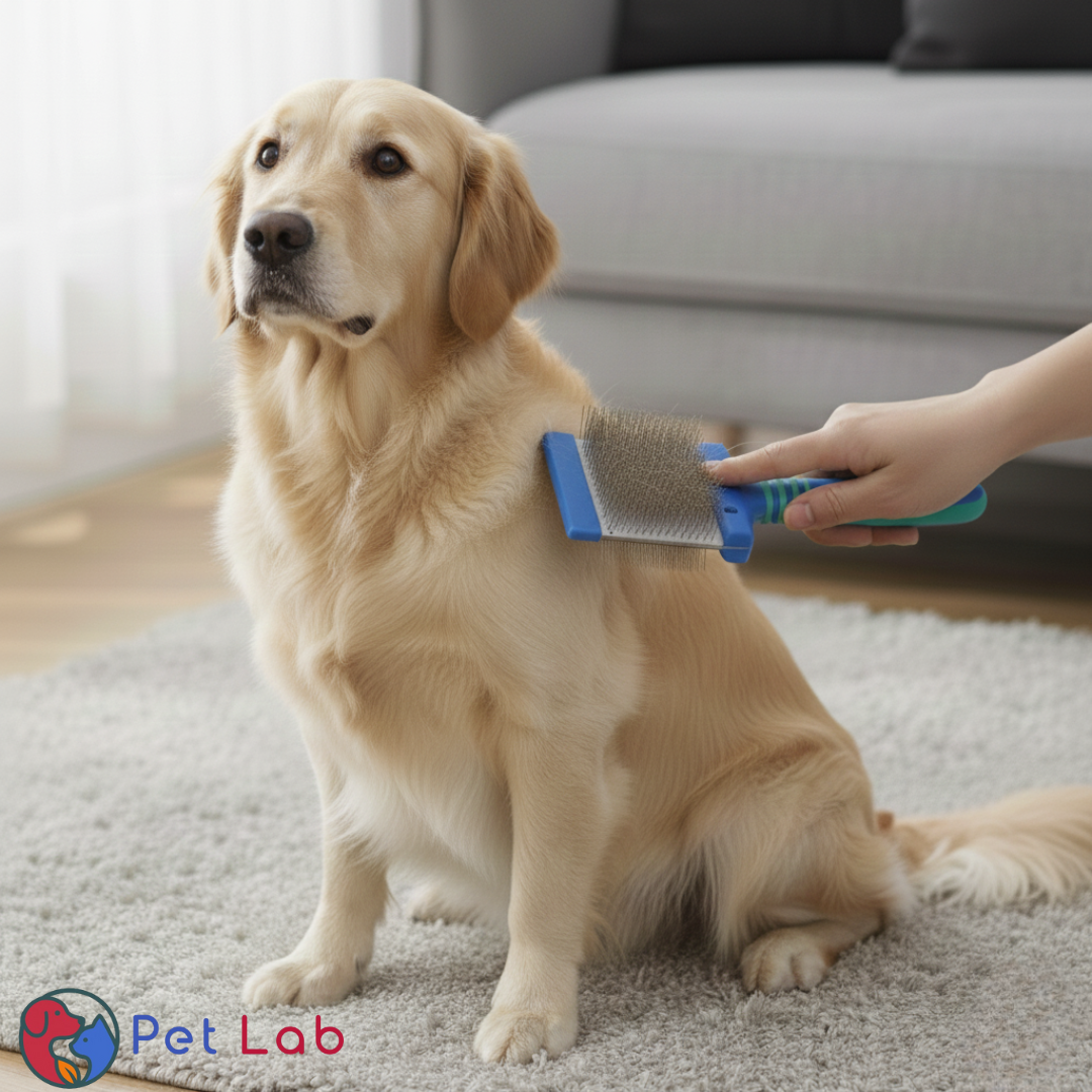 De Dubbelzijdige Borstel van Pet Lab is perfect voor het ontklitten en verzorgen van de vacht van honden en katten. De lange, gebogen pennen verwijderen losse en dode haren en zorgen voor een gezonde glans. Dankzij de buigbare basis volgt de borstel moeiteloos de lichaamsvorm voor extra comfort tijdens het borstelen.